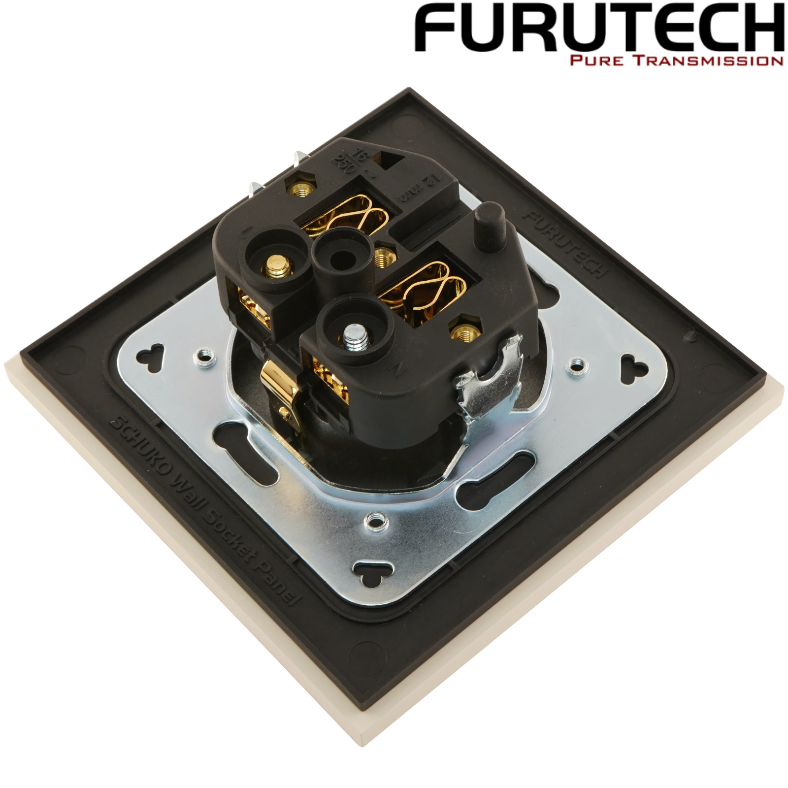 This is a high-performance, gold-plated non-magnetic schuko wall socket with pure copper conductors from Furutech. The body is manufactured from nylon/fibreglass with a polycarbonate cover.
