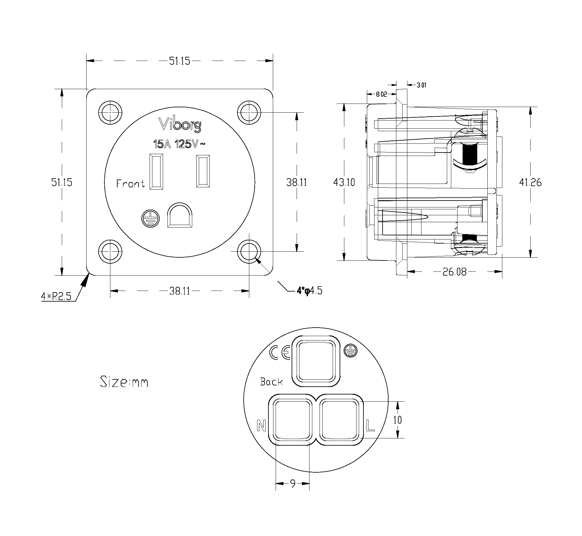 - Conductor(L & N): Pure Copper (purity 99.98%)