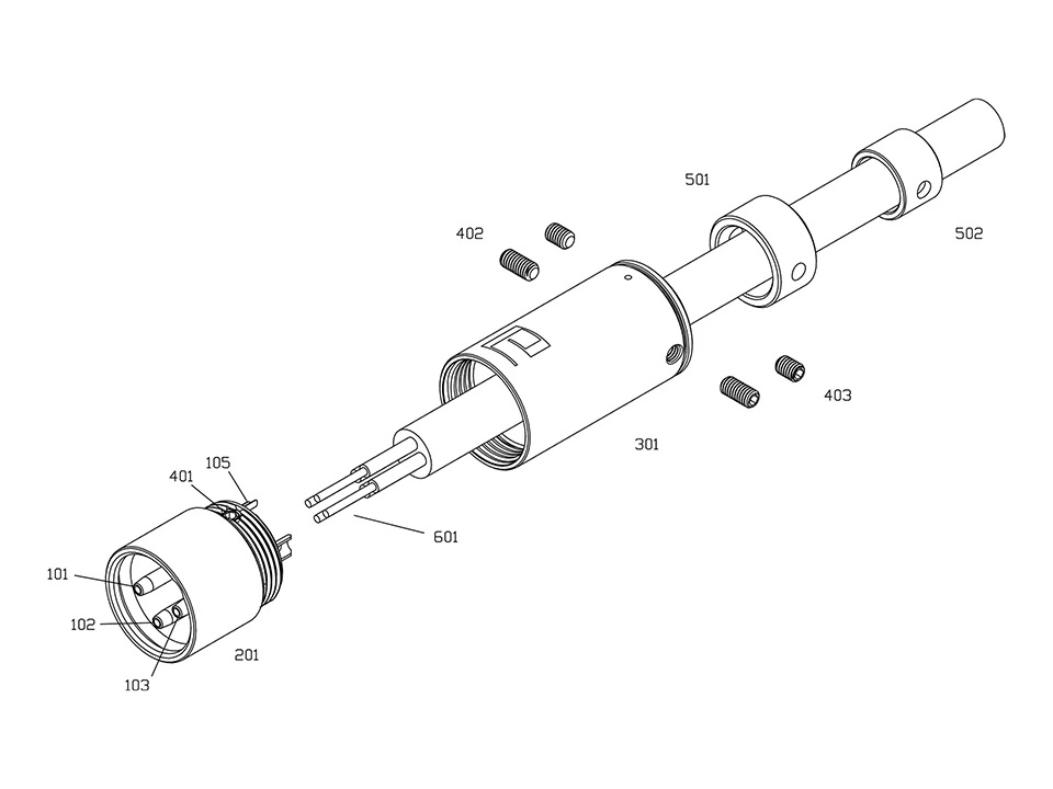 - Please fix the cable ,POM sleeve, and shell through the screw [402] or [403] .